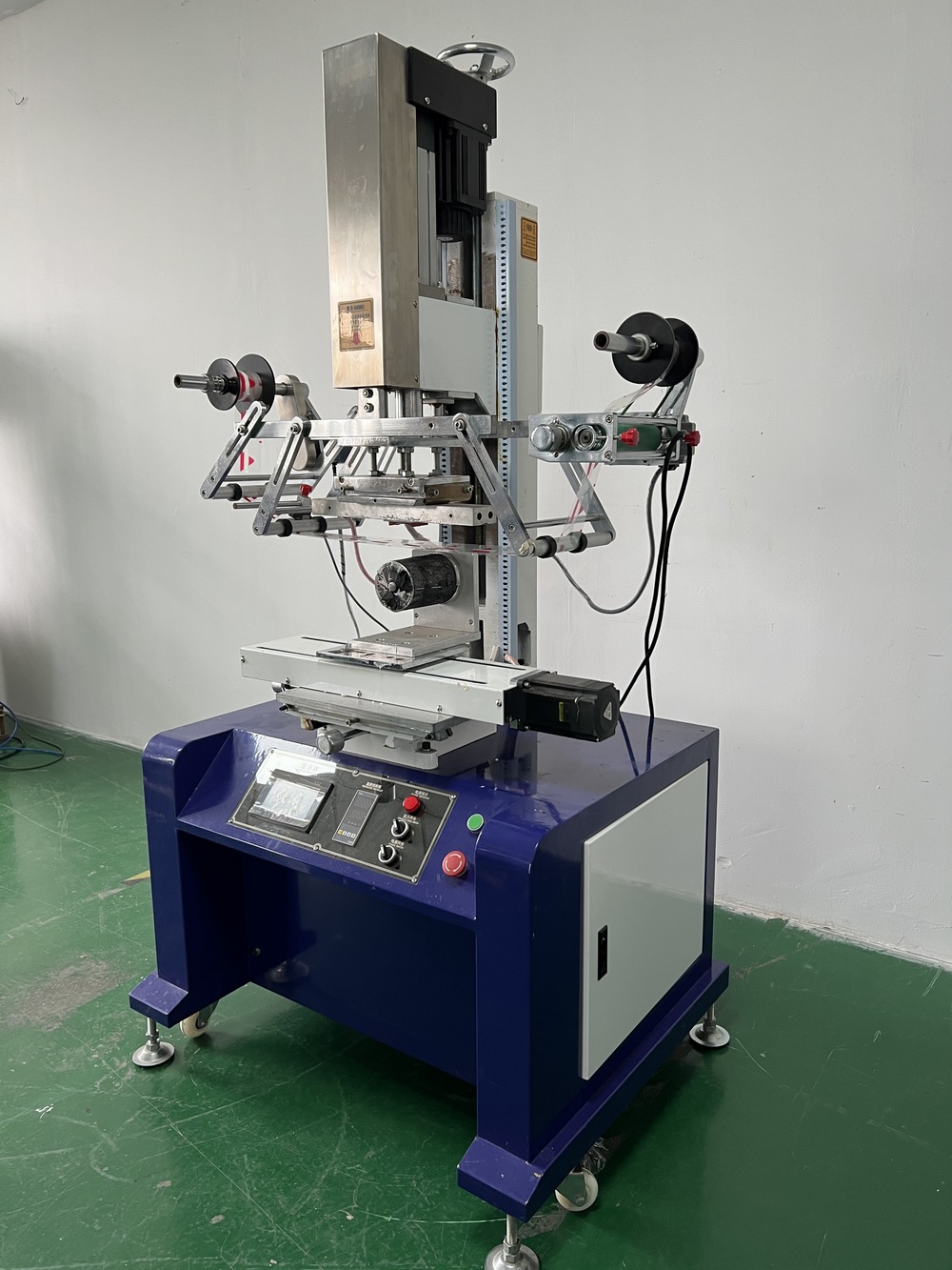 * 加装光电管(台湾FOTEK电眼,每秒250次高精度动作)对带定位点的热转印纸精确跟踪控制。