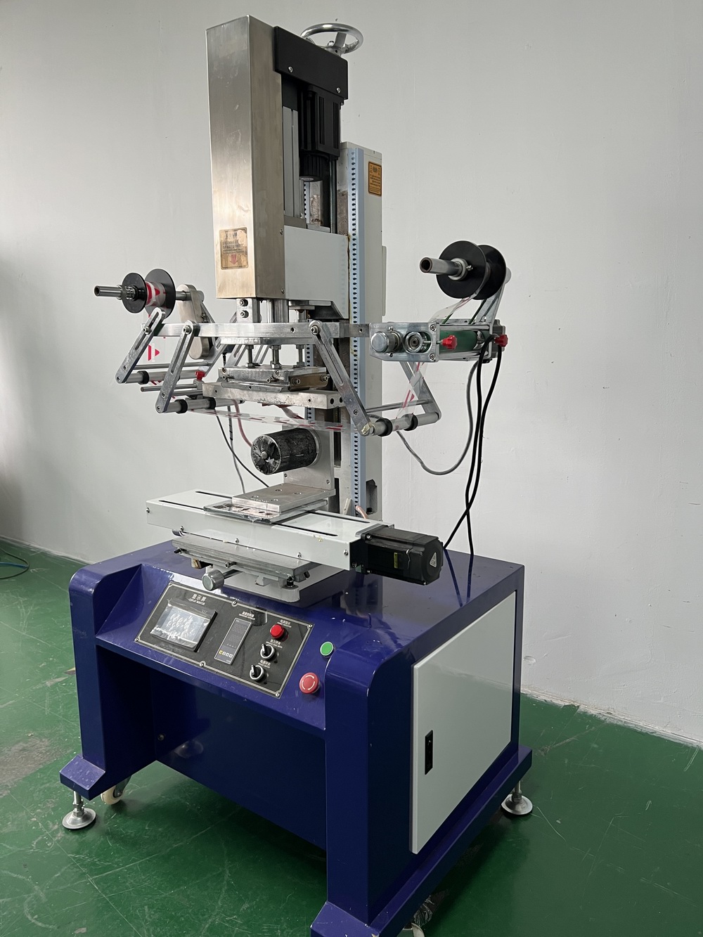 * 加装光电管(台湾FOTEK电眼,每秒250次高精度动作)对带定位点的热转印纸精确跟踪控制。